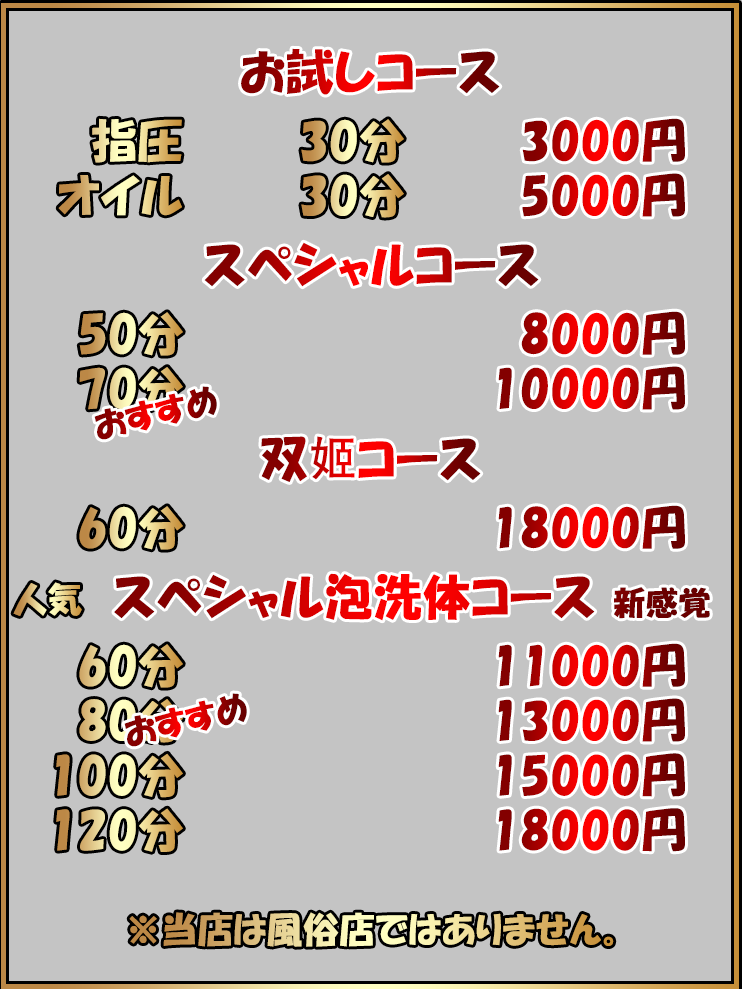 待遇 | 完全全額日払い制 優しく笑顔でお客様に接客できる方、おしゃべりが好きな方。 出勤後に一時外出することもできます。 指圧整体等の経験者は優遇させていただきます。 |